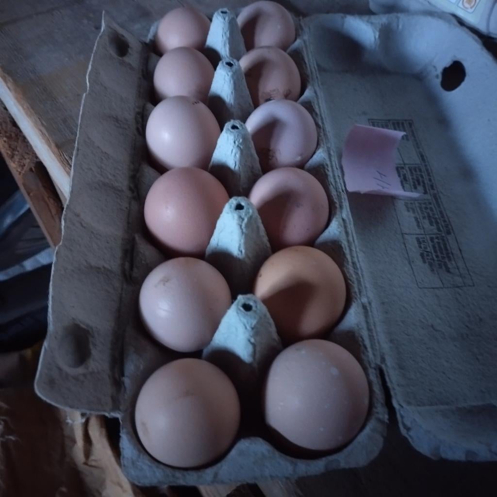 15 mars 26DirkjeVosselaar - Broedeieren legkippenBroedeieren legkippen te koop. De hanen die erbij lopen zijn 2 sussex, 1 mechelse koekoek en enkele zilver- en goudbrakels. Komt dus wat vanalles uit. 6€/12 eieren.
