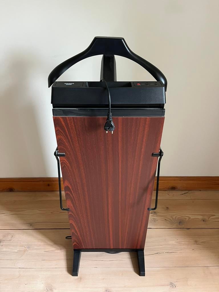 27 mars 26Greta Van den BroeckeWestmalle - presse-pantalons électrique Aris en bois de cerisier massifPresse-pantalons électrique (80 watts) de la marque aris haut de gamme en bois de cerisier massif avec ceinture et porte-cravate, étagère de rangement. Les pantalons sont parfaitement pressés contre lUtilisé Enlèvement