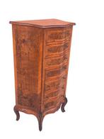 22 mars 26G. PeresMeise + Deel Van Brussegem - Buffet Bonheur Biedermayer flamand antiqueArmoire solide avec 2 tiroirs et 2 portes. Portes avec placage miroir en bois de racine. Console avec sculpture en noyer. Laque lourde en combinaison avec du vernis. Dimensions largeur 150 cm hauteurEnlèvement