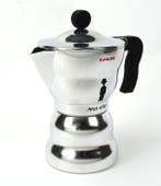 - Alessi - Alessandro Mendini - Cafetière - Moka - Moulage enCafetière express alessi moka conçue par alessandro mendini, en aluminium brossé et usiné avec poignée et bouton en résine thermoplastique; origine italie, capacité 3 tasses (ø9,6 cm, 15 cl), largeur/