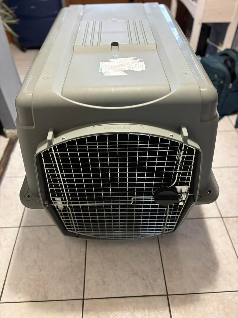 Avant-hierRaphaAmay - Cage de transport avion chienCage de transport normes iata. Avec roulettes. Avec fermeture et boulons. Voir mesures avant dernière photo. Je la vend car elle est trop grande pour mon chien.Enlèvement