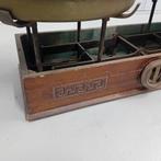 - Outil de travail - Balance antiqueBalance de bureau antique datant de 1910–1920 avec caisse en bois et plateaux en laiton, mécanisme à levier en fer, origine italienne, environ 15 kg, état usé avec probable petit éléments manquants.