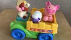 - Camion de la ferme avec vache, cochon et moutonEn poussant sur la vache, le camion avance tout seul même sans pile. Avec piles, musique entraînante.Comme neuf