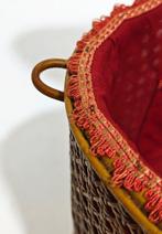 22 mars 26Jürgen RoggeOud-Heverlee - Boîte à couture - canne de bambou, Textile - Paglia diVieux conteneur oval multifonction italien des années 1960, fabriqué en canne de bambou, rattan et paglia di vienna avec intérieur en tissu rouge et finitions à franges, couleur marron, dimensions 44