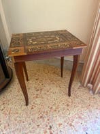 - Centre de table - Bois - Petite table à carillonPetit guéridon en bois équipé d’un carillon, fonctionnel, période estimée 1940–1950, origine italie, dimensions 35 cm de profondeur, 40 cm de diamètre, 53 cm de hauteur, 45 cm de largeur.
