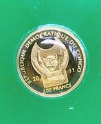 - Congo. 100 Francs 2011 “Famous Gold Coins of the World,Pièce d’or de 0,50 g (999,9) du congo rdc, année 2011, proof, série famous gold coins of the world, valeur nominale 100 francs, av. Maple leaf de 100 kg et revers armoirie nationale, tirage 5 000, enc