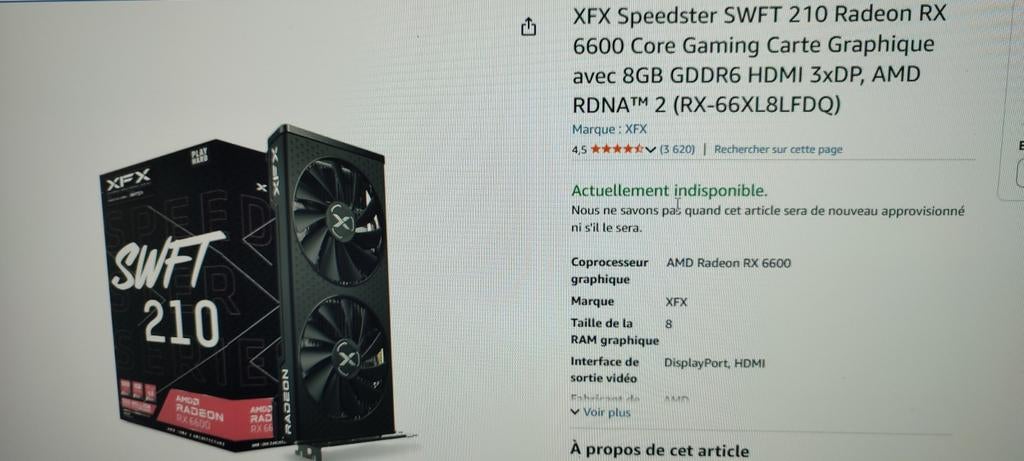 31 mars 26Jérôme MarchandAnhee - ASRock - AMD Radeon RX 5500 XT 8GB Challenger - OC EditionCarte graphique asrock - amd radeon rx 5500 xt 8gb challenger - oc edition. Utilisé pendant 3ans ; en bon état. Elle est capable de faire encore tourner la majorité des jeux actuels tel que baldur gatUtilisé Enlèvement ou Envoi