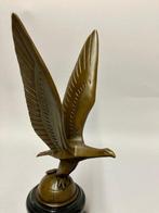 8 mai 21GuntherLangdorp - Beeldje - Adelaar - naar Casimir Brau - Mascot BronzeCasimir brau, adelaar - naar casimir brau, een bronzen motorkapornament op een ronde marmeren voet, 24 cm hoog en 9,5 cm doorsnede, gesigneerd cbrau met bronsgieterszegel in art deco-vormgeving, uit 2
