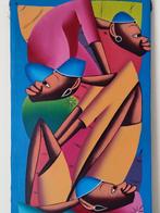 24 oct. 24DavidAntoing - Laurent Casimir - Marché haitienMarché haïtien, peinture à l'acrylique sur toile de 74 × 29 cm par l'artiste haïtien laurent casimir, signé à la main, édition originale, provenance haïti, en bon état.