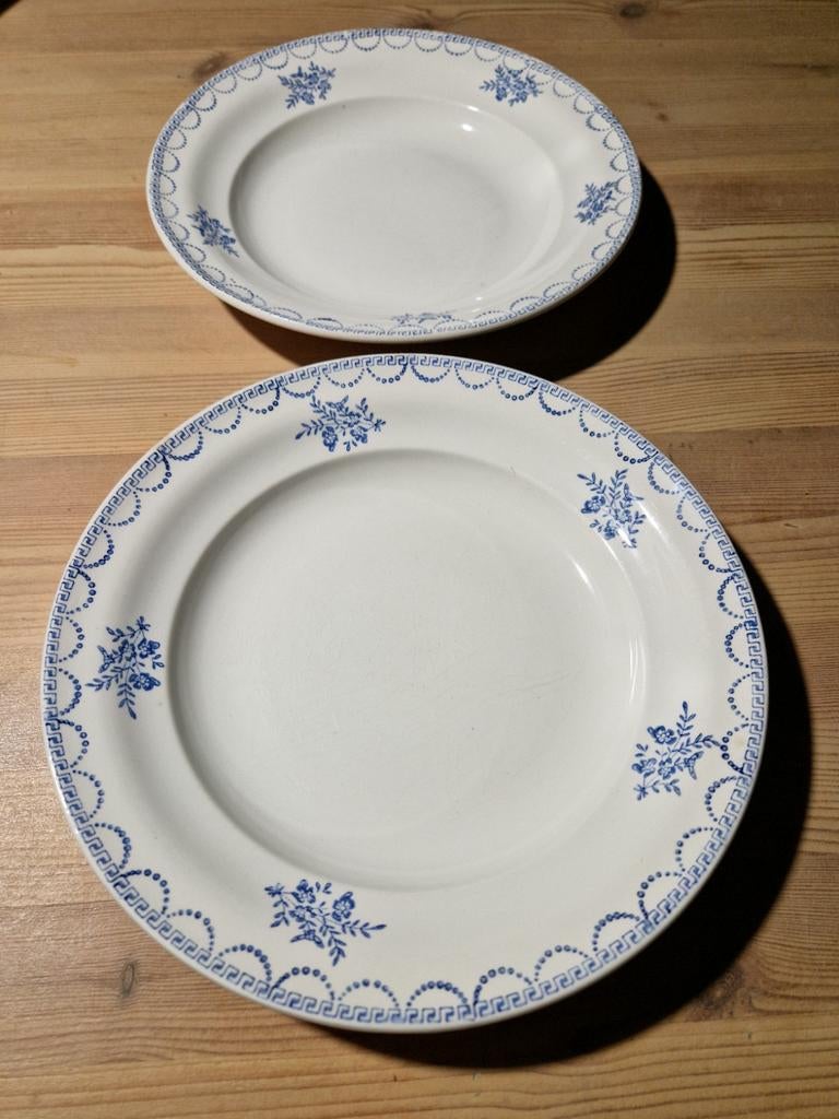 17 août 24Pol en GretaMeerbeek - Superbe service ancien CĖRANORD faïence bleueAuthentique service en faïence fine céranord saint-amand (1920-1930) au décor bleu élégant. Composition du service 50 pièces: 19 assiettes profondes 18 petites assiettes 9 assiettes plates 1 grande soEnlèvement
