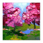 HierAardbeiLeuven - Caroline Mandrafina - Pfleger Cerisiers du JaponOriginele olieverfschilderij van caroline mandrafina, getiteld pfleger "cerisiers du japon", 50 × 50 cm, met handtekening, in uitstekende staat, gemaakt in 2026 in frankrijk, moderne stijl,