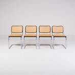 25 mars 26Scandi Vintage FurnitureAntwerpen - Gavina - Marcel Breuer - Stoel (4) - Cesca - BeukenSet van vier cesca-stoelen ontworpen door marcel breuer, geproduceerd door gavina in de jaren zestig, met chromen stalen cantilever-frames, zwart gelakt beukenhout en vienna stro zittingen, afmetingen