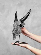 - PAS DE PRIX DE RÉSERVE - Crâne de chèvre brun sculptéPériode estimée 2024, crâne de chèvre indonésien gravé à la main (capra hircus) avec un motif ketupat, en bon état et pesant environ 1,3 kg.
