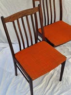 - Chaise - Bois de violette, Teck - Deux chaises vintageDeux chaises de salle à manger de design danois des années 1960 en bois de palissandre/teck avec une sellerie orange, en bon état d’usage avec de petites traces du temps.