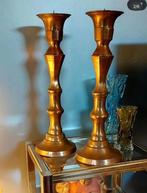 Deux vieux chandeliers d'église lourds. Matériau : cuivre de 58 cm de haut en bon état.