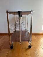 HierPieterBruxelles - Wenko - Chariot de service - Dinett - Métal, StratifiéChariot de service pliante wenko dinett sur roulettes en excellent état, cadre en tubes d'acier chromés et plateau stratifié imitant le bois, dimensions 90 cm de haut sur 67 cm de large et 40 cm d