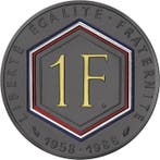 - Frankrijk. 1 Franc 1988 Charles de Gaulle (ZonderFrankrijk, 1988 charles de gaulle-thema 1 franc munt, 6 g, 24 mm, ruthenium-kleuren met gouden afwerking, kleurwerk door een derde partij, gelimiteerde editie van 500. 1 Franc ruthenium kleuren en gou
