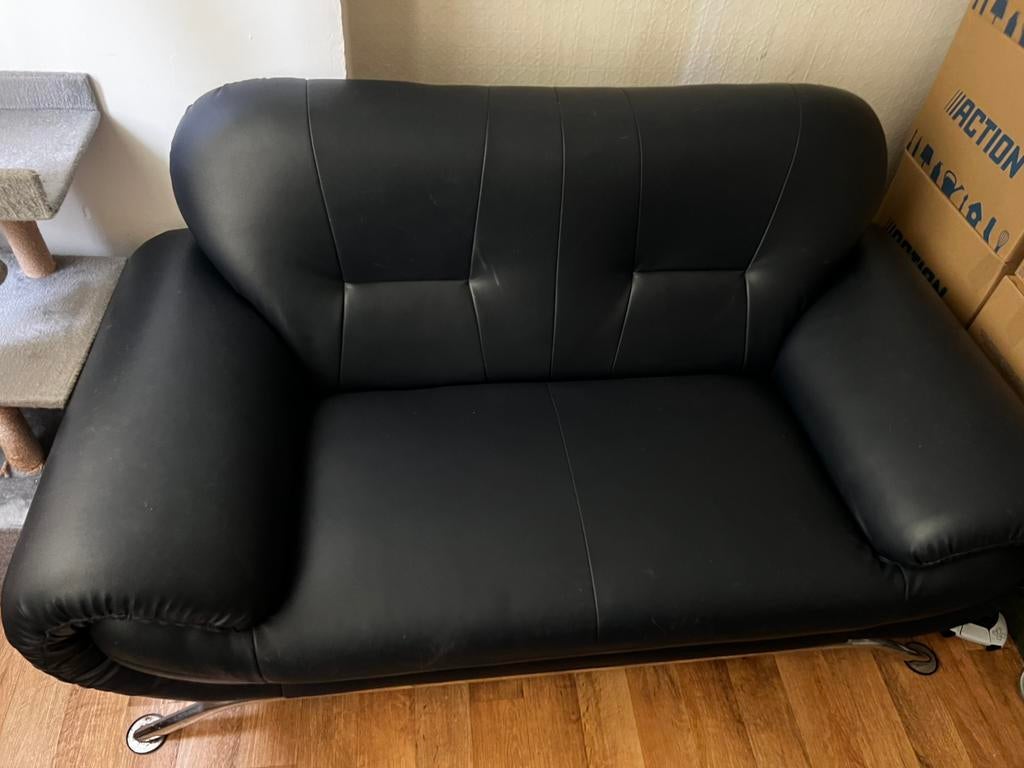 - Canapé en cuir 2pJe dirais qu'il est en bon état, avec une couverture, c'est parfait. C'est très confortable. Signes de crevaison et de rayures de chatComme neuf Enlèvement