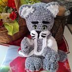 23 mars 26moustacheRonse - Grand chat en peluche avec bonnet et écharpe dans sa laineGros chat avec chapeau et écharpe, travail manuel unique, avec yeux de sécurité en acrylique et laine, les poils peuvent être peignés avec une petite brosse pour chatNeuf Enlèvement ou Envoi