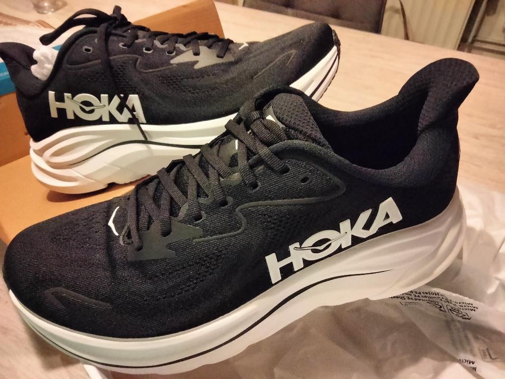 - Chaussures de course HOKA noires taille 44 2/3Chaussures de sport hoka, chaussures de course, taille 44 2/3, couleur noire. À Seulement 6 km, mais trop petit pour moi. Récuperer à borsbeek antwerpen anversNeuf Enlèvement ou Envoi