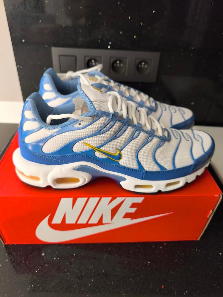 - Nike Air Max Plus TN White Lyon Blue neuves T46Bonjour ☺️, voici une superbe nike air max plus tn white / lyon blue, modèle récent sorti en 2024, dans un état absolument impeccable. Un coloris blanc et bleu élégant, très facile à porter au quotidiEnlèvement