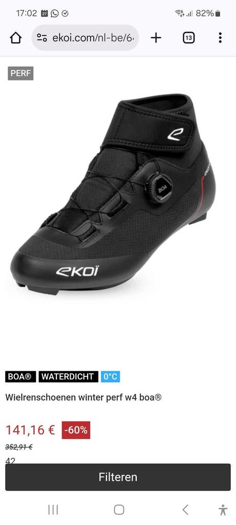 21 févr. 26Etienne Van ThorreWayaux - Chaussures hiver Northwave extreme Gore Tex 42Chaussures pour vélo de route, cales look. Pour hiver, en gore tex. Serrage boa fiable, et rapide.Enlèvement ou Envoi