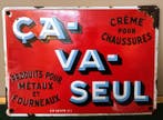 8 avr. 26Pub au topCatawikiToute la Belgique - Emaillerie Koekelberg - Oud geëmailleerde plaat CA-VA-SEUL –Vintage emaille reclameplaat voor ca-va-seul schoenerscrème, gemaakt in belgië, met rode, blauwe en witte reliëfletters in een art deco-stijl (ca. 1930–1940), Afmetingen 25 cm hoog bij 35 cm breed en