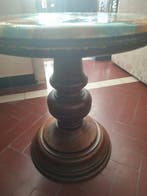 Aujourd'huiPub au topCatawikiToute la Belgique - Table dappoint - ChêneUne petite table d’appoint art déco en chêne, datée de 1930–1940, en état moyen avec usure importante et pièces mineures éventuellement manquantes, dimensions h65 x l40 x p40 cm (diamètre du plateau 3