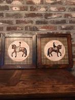 - Tableau diptyque ancienDiptyque peinture antique équestre oeuvre signes peinture sur planches dressage cheval autocollant peinture antique sur étain antique cheval écurie signes dimensions 40 x 40 cm.Enlèvement ou Envoi