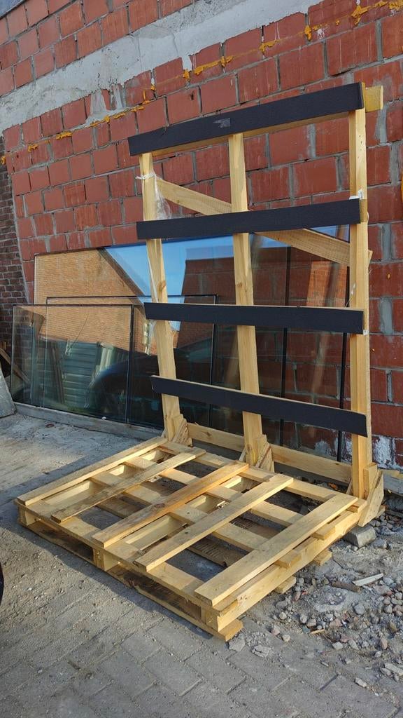 HierPub au topCatawikiToute la Belgique - Support de transport pour verre / chevalet à vitrage en boisSupport en verre en bois robuste à vendre, idéal pour le transport et le stockage en toute sécurité des fenêtres, des plaques de verre ou des panneaux. - Fabriqué en bois massif robuste - équipé de laNeuf Enlèvement