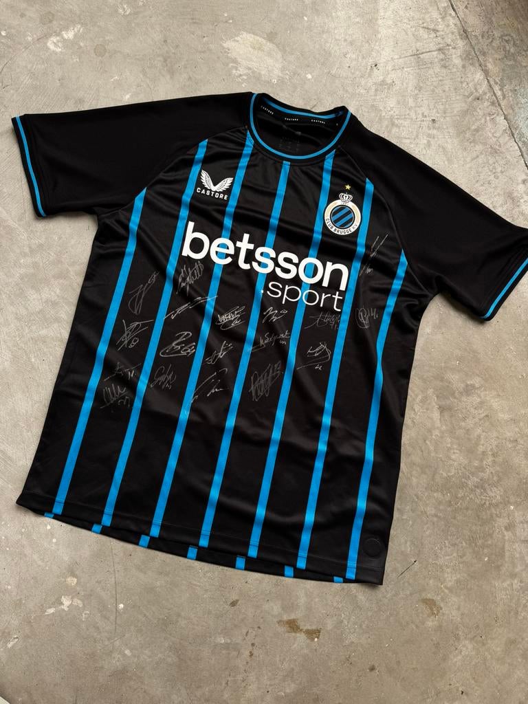 - T-shirt dédicacé par l'équipe complète du Club de BrugesT-shirt dédicacé par l'équipe complète du club de bruges article fourni avec certificat et puce nfc si vous avez des questions, vous pouvez toujours envoyer un messageComme neuf Enlèvement ou Envoi