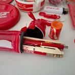 - Collection darticles de marque - Produits dérivés Coca-ColaCollection de produits dérivés cocacola composée de 40 pièces datant de la fin du xxe siècle, en bon état, comprenant portefeuille, set de stylos, boule de noël, cendrier, glacière, bouteille tour de