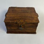 Avant-hierjellejelleclaeysEdegem - Cercueil - Coffre métallique ancien pour pièces, avecCoffre-fort ancien en fer avec imitation bois marqueterie palissandre, peint à la main, du xixe siècle, pays-bas, dimensions environ 29 cm de largeur, 26 cm de profondeur et 13 cm de hauteur, en bon é
