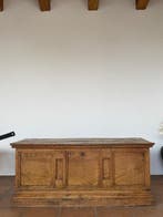 Aujourd'huiPub au topCatawikiToute la Belgique - Coffre de rangement - Bois, Métal, PapierTrésor en bois ancien avec renforts en fer forgé du début du xxe siècle, marron, esprit vintage; dimensions 92 × 60 × 47 cm; utilisable comme rangement ou objet décoratif.