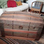 1 avr. 26CaratpartsGenk - Coffre de rangement - Bois, Métal, PapierMalle ancienne en bois brun avec renforts en fer forgé et couvercle bombé, période 1900–1910, dimensions 92 × 47 × 60 cm, en bon état d’usage.