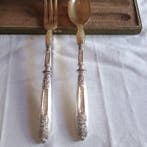 - Couverts de service à légumes (2) - Argent 950 - Couvert deDeux couverts de service à salade ou légumes en argent (argent 950) avec corne, époque napoléon iii (1850–1900), poinçon minerve légèrement visible au dos des couverts, dans leur coffret d’origine, en