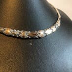 - Sans prix de réserve - Collier ras du cou Argent - Choker enCollier choker en argent 925 pour dames, pesant 27 g, largeur centrale de 9 mm avec motifs géométriques et accents dorés en forme de diamant; aucun rapport de laboratoire.