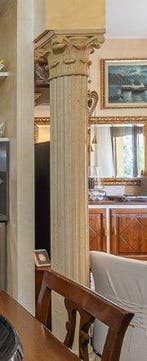 - Colonne - 2000-2010Colonne en pierre reconstituée blanche sur mesure provenant d’italie, haute de 205 cm, largeur 34 cm, profondeur 34 cm, datant de 2000–2010, avec un chapiteau très détaillé influencé par l’ioniquecori