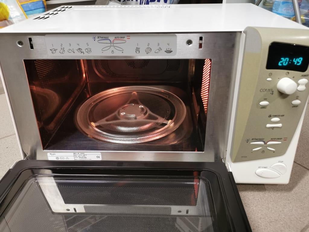 Aujourd'huiBennySint-Truiden - micro ondes whirlpool jt 355 super micro ondes il fait cuissMicro ondes whirlpool jt 355 super micro ondes il fait cuisson et réchauffage , gril, jet start, gri combi, crisp, chauffage rapide, chaleur pulsé, fonction jet defrost,Enlèvement ou Envoi