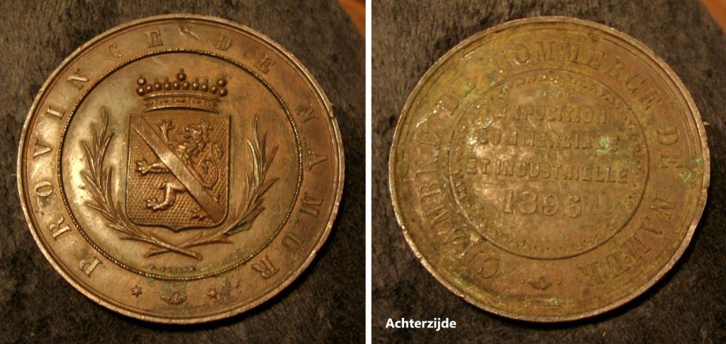 - Medaille Expo Chambre de Commerce Namur 1896Bronzen gedenkmedaille uitgegeven voor een tentoonstelling ingericht door de kamer van koophandel te namen in 1896. Nog in goede staat en niet opgekuist. Diameter 68 mm. Gesigneerd p. Fallon.Enlèvement ou Envoi