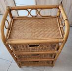 Commode vintage + miroir commode chiffonnier semainier vintage des années 70, en rotin, bois et cannage, 7 tiroirs à coulisses, intérieur des tiroirs en mélaminé, fond du cannage couleur vermillon, très bon état général avec quelques signes du temps ...