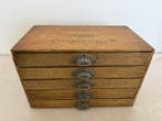 - Commode - Bois de pin - 5 commodes GutermannVitrine en bois pour fils avec 5 tiroirs, marque gutermann, originaire d’allemagne, première moitié du xxe siècle (1940–1950); bois d’épicéa brun, dimensions 38,5 × 24,5 × 22 cm, poids 3 kg, en bon ét