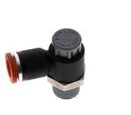 - Vanne de régulation de débit Coude dentrée 8 mm - R1/4Il s'agit d'une vanne de régulation de débit pneumatique avec un coude à l'intérieur du compteur pour une régulation unidirectionnelle réglable du débit d'air. Il comporte un raccord iVerzenden