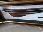 1 avr. 26YuliLichtervelde - Bateau miniature à demi-coque - YankeeDemi-coque yankee en bois, dans un cadre vitrine en verre, dimensions totales 59 cm sur 23 cm sur 6 cm; couleur brun et état très bon.