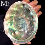 - Coquille géante en nacre - Magnifique coquille marine -Specimen : haliotis rufescens (conque perlière géante), du mexique, 200 × 162 × 43 mm, poids 343 g, nacre orange irisée.