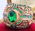 1 avr. 26Rudina2020Groot - Bijgaarden - Sans prix de réserve - Bague - 9 carats Or rose, ArgentBague antique en or rose 9 kt et argent, avec une émeraude centrale de 1,00 ct et 42 émeraudes rondes totalisant 0,60 ct, poids total 10,58 g, taille italienne 14 (54 française), corolle 1,90 × 1,70 c