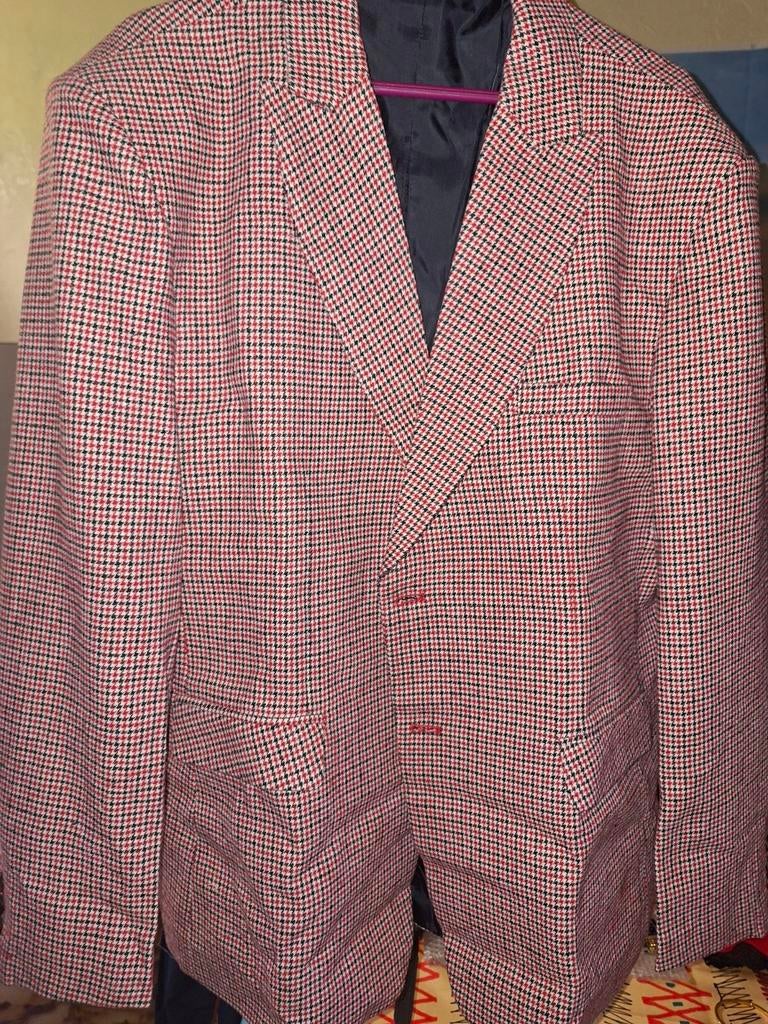 4 avr. 26nancyKaprijke - Costume Belize pour homme 48/50Costume cool, de couleur marron clair avec de fines rayures et une légère brillance porté mais toujours en bon état dimensions : veste : 54 aisselles, 44 cm d'épaules, longueur 80 cm pantalon 44 cPorté Enlèvement ou Envoi
