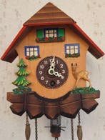 8 févr. 26M KNieuwkerke - Horloge - E. Schmeckenbecher - Bois - 1970-1980 - Horloge àHorloge à coucou allemand des années 1970–1980 avec caisse en bois et mouvement mécanique regula fabriqué par e. Schmeckenbecher, 30 cm de haut sur 20 cm de large (1 kg), réserve de marche de 8 jours,