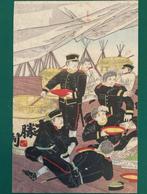 - Toeschreven aan Ysh Chikanobu — Grote overwinning van deToegewezen aan ysh chikanobu, dit triptych uit de meiji-periode (drie vellen, houtdruk in polychromie op washi) toont een viering van japanse soldaten, circa 1894–1895, met de opstaande zon-vlag en sa