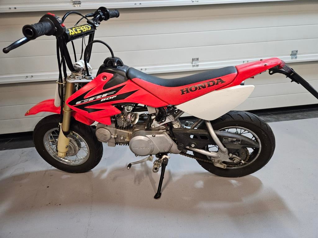 - Honda Crf 50 met B klasse papierenBij deze verkoop ik mijn crf 50 de crf heeft b klasse papieren met bijhorend type plaatje dus kan legaal de baan op. 85Cc kitje top snelheid 70 km/h blokje heeft rond de 1000 kmers de brommer is in goComme neuf Enlèvement
